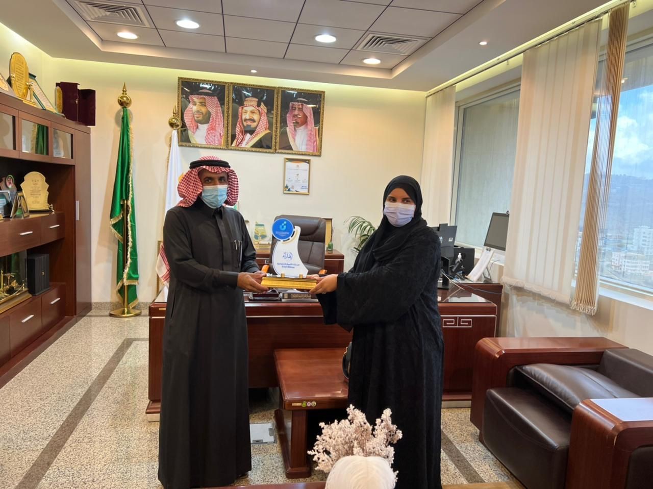استقبل مدير عام فرع وزارة الموارد البشرية والتنمية الاجتماعية بمنطقة الباحة شائق بن محمد آل شائق اليوم بمكتبه مديرة فرع بنك التنمية الاجتماعية بمنطقة الباحة الاستاذة شريفة سعيد حسن الغامدي وفريق عملها لمناقشة سبل التعاون بين فرع الوزارة والبنك من خلال البرامج التمويليه المقدمة من البنك للقطاع الغير ربحي ومساعدة الجمعيات الخيرية والتخصصية وكذلك دعم الجمعيات ببرامج ومحافظ تموينية لمستفيدي الجمعيات وكذلك دعم المشاريع الحرفية والإنتاجية للمستفيدين لخلق فرص استثمارية لهذا القطاع لإخراج الفئة المستهدفة من الرعوية إلى التنموية .