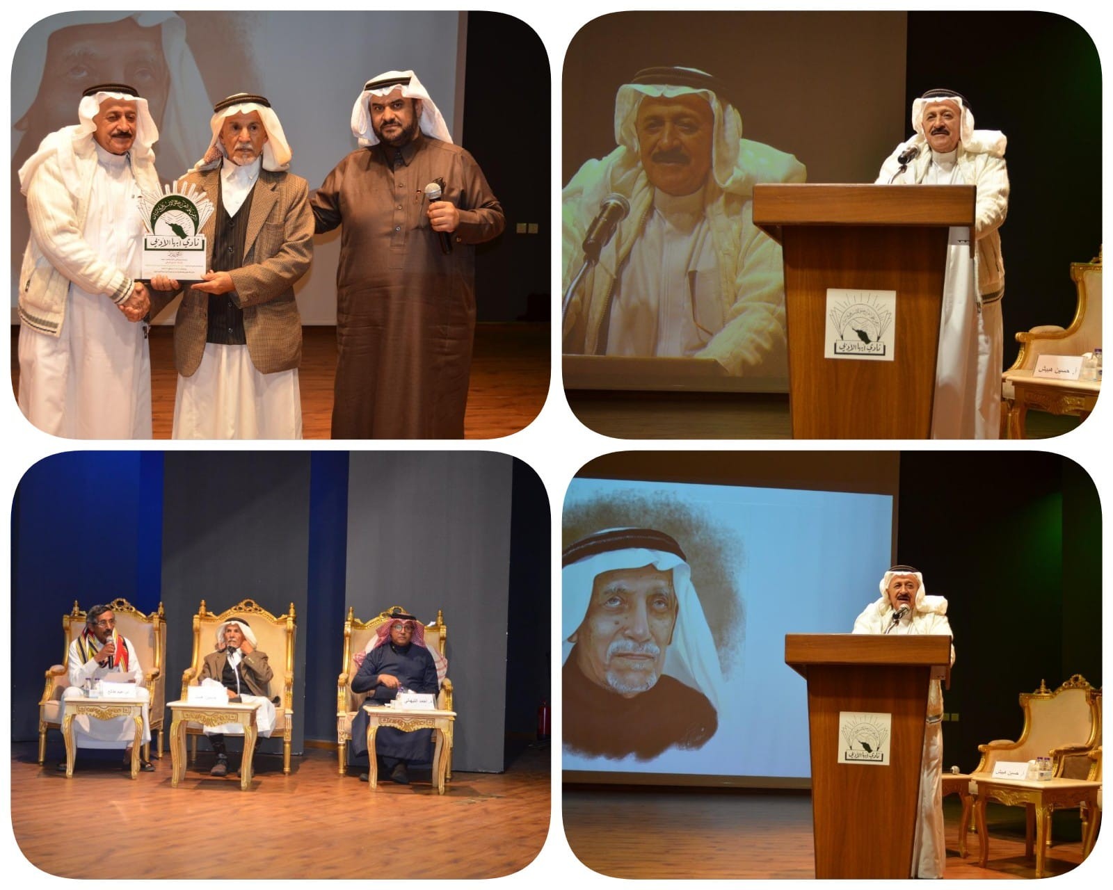 ثم تحدث ابن الراحل خالد عن علاقته بوالده بصفته يشاركه ذات الاهتمام الثقافي وهو القريب منه في هذا الإتجاه، فذكر أنه كان يشاركه ما تختلج به نفسه ووصفه بأنه الأب الكبير بسلوكه، الحنون الذي لا يغضب ولا يضرب ولايوبخ أحداً من أبنائه، ثم قرأ نصاً لأبيه بعنوان "إلى ابني" مستشهدا به على ما ذكر وعرج على بعض المحاورات الشعرية التي دارت بينهما، وأطلع الحاضرين على بعضها وتحدث عن علاقة الراحل بعائلته.