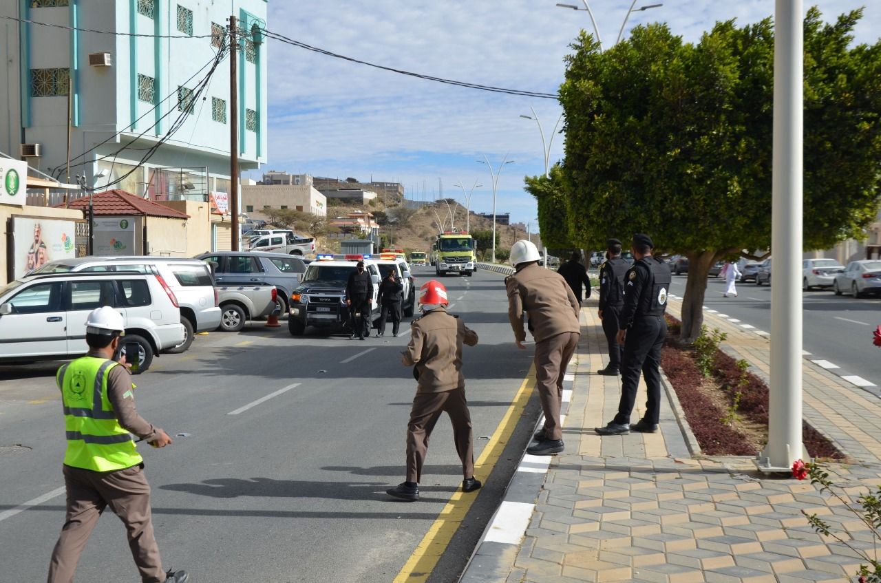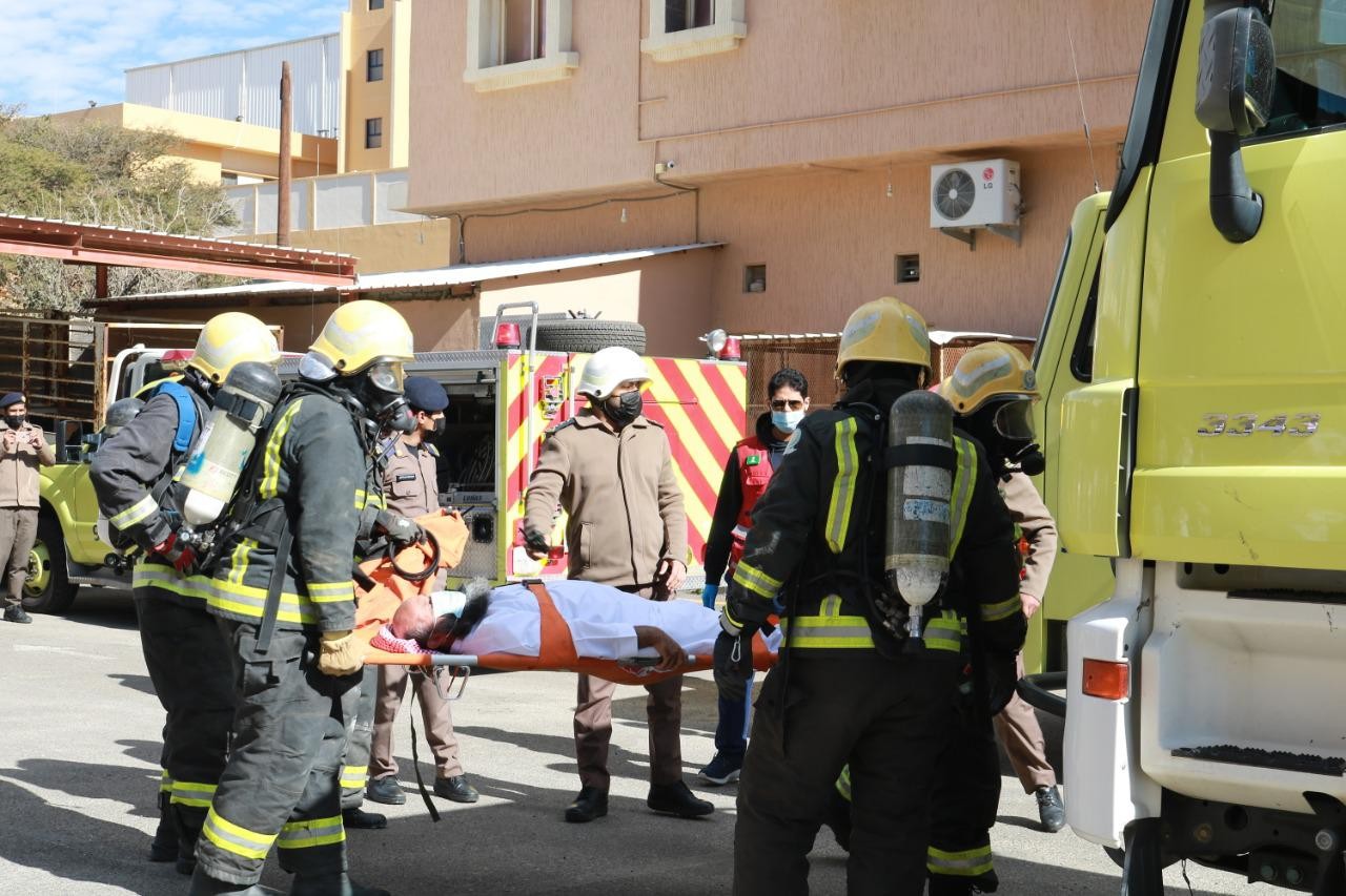 و نُفذ خلالها تطبيق خطة الإطفاء والإخلاء الطبي، والمساندة الأمنية والمرورية المتبعة في مثل هذه الحالات، بمشاركة فرق الهلال الأحمر والمرور والدوريات الأمنية وفرق الطوارئ في الشركة السعودية للكهرباء.