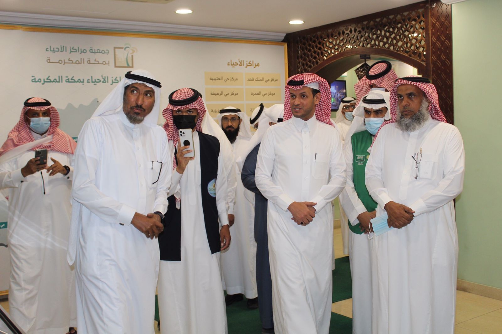 بقاعة الأحمدي بمقر جمعية مراكز الاحياء بمكة اليوم الأربعاء 25/5/1443هـً الموافق 29/12/2021م قبل بدء التكريم كانت هناك جولة للضيوف في معرض الجمعية اصطحبهم فيها الدكتور يحيى الثقبي وأ. مفرح عسيري .