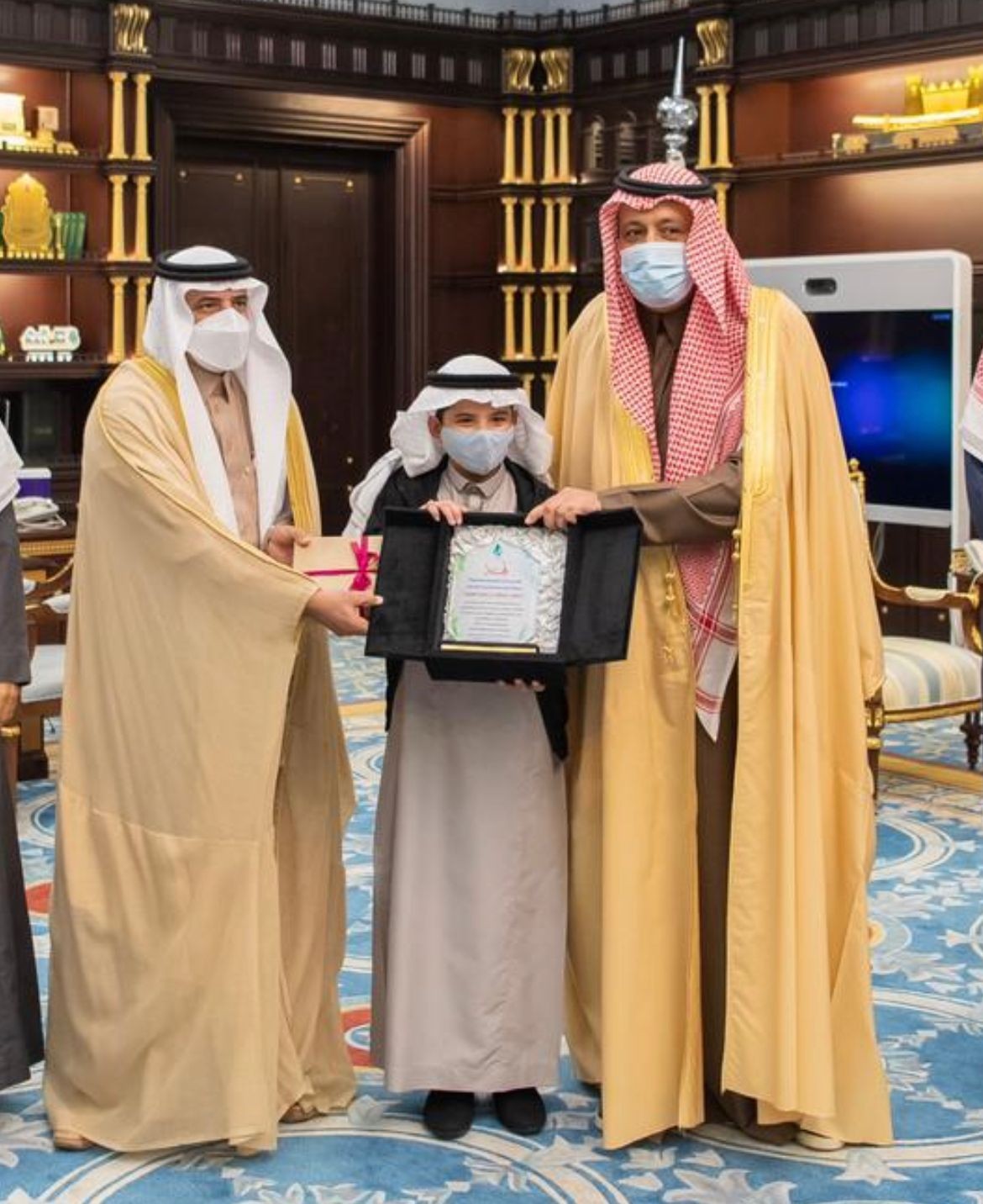 استقبل صاحب السمو الملكي الأمير الدكتور حسام بن سعود بن عبدالعزيز أمير منطقة الباحة بمكتبه بديوان الامارة ، الطالب المتميز عبدالله محمد عبدالله العُمري احد طلاب مدرسة العزيزية الابتدائية بالمخواة والحاصل على جائزة مكتب التربية العربي لدول الخليج في مجال التفوق الدراسي ، يرافقه مدير التعليم بالمخواة علي بن محمد الجالوق .