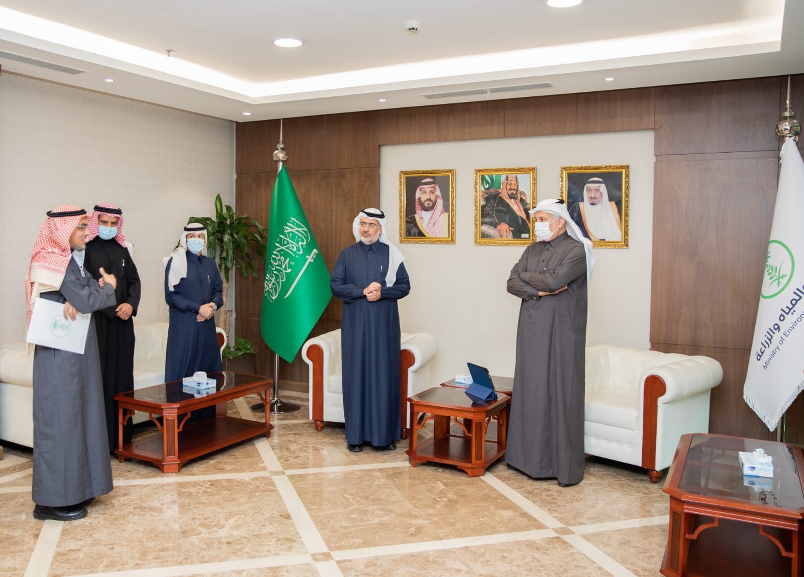 دشن معالي وزير البيئة والمياه والزراعة المهندس عبدالرحمن بن عبدالمحسن الفضلي شعار اللجنة الوطنية للموارد الوراثية النباتية للأغذية والزراعة ، بحضور وكيل الوزارة للزراعة المهندس أحمد بن صالح العيادة وأعضاء اللجنة الوطنية.