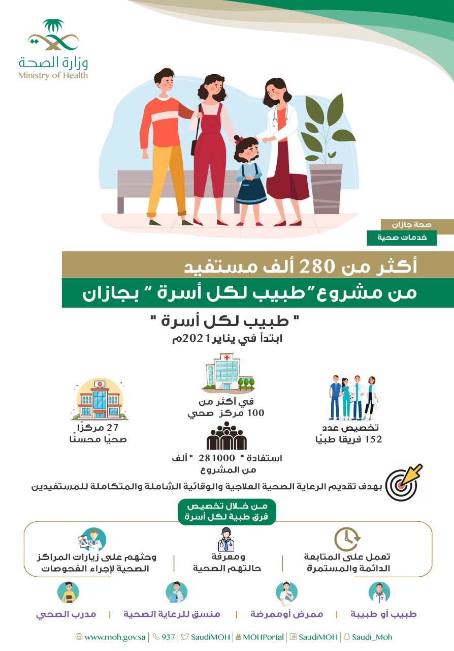 أكثر من 280 الف مستفيد من مشروع طبيب لكل أسرة بجازان