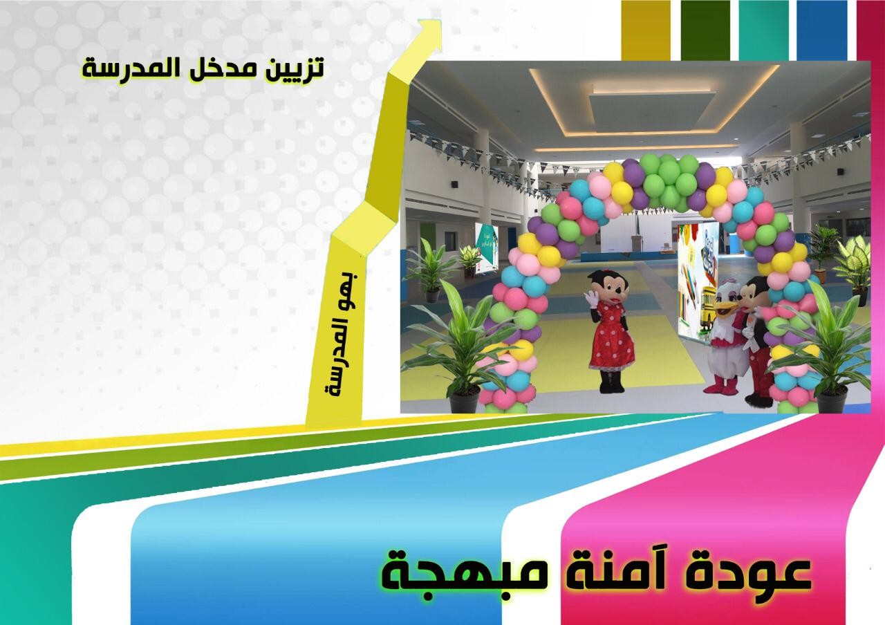 ضمن الاستعدادات للإدارة العامة للتعليم بمنطقة مكة المكرمة للعودة الحضورية الآمنة لـ 200 ألف طالب وطالبة من المرحلة الابتدائية ورياض الأطفال في 800 مدرسة ابتدائية وروضة أطفال، والتي تنطلق مطلع الأسبوع القادم 20 / 6 / 1443هــ ، فقد اعتمدت الإدارة العامة للتعليم بمنطقة مكة المكرمة ما أعده قسم التربية الفنية من خطة لهوية العودة الحضورية تحت شعار " عودة آمنة ومبهجة " حيث تمثل التصور في تزيين المبنى المدرسي من الخارج بإضاءات خارجية بلون أخضر على محيط المدرسة تضاء في فترة المساء للإعلام عن الحضور ، ووضع كشافات خارجية بلون أخضر في أعلى المبنى بعبارة ترحيبية للطلاب والطالبات بالهوية ، وكذلك وضع أعلام مثلثة بألوان مختلفة تُزين المدرسة من الخارج ممتدة من الأعلى إلى الأسفل ، وضع أعلام على سور المدرسة بألوان مختلفة ، وضع زل في مدخل المدرسة ، وضع دمية هوائية أو بلاستيكية في مدخل المدرسة من الخارج والفناء الداخلي ، كذلك تزيين مدخل المدرسة بوضع مراكن زرع زينة ، ووضع استاندات ترحيبية بالهوية ، وعمل قوائم أو شكل قوس من البالونات الملونة ، بالإضافة لزيين ممرات المدرسة الداخلية بوضع شرائط ورقية أو بلاستيكية بألوان وأشكال مختلفة في الممرات والفصول ، وتزيين مداخل الفصول الدراسية من الأعلى بألوان مختلفة من البالونات ، ووضع ملصقات ورسومات مبهجة على أبواب الفصول وداخل الفصل الدراسي .