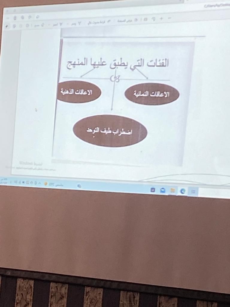 قدم الورشة كل من مديرة إدارة الإشراف بالفرع الاستاذة /عنود الرميح والاستاذه/ غلا الرويلي وتهدف هذه الورشه لتطوير وتثقيف العاملين للتعامل مع هذه الفئات ودورهم في تطوير سلوكهم وتدريبهم على الاعتماد على انفسهم .