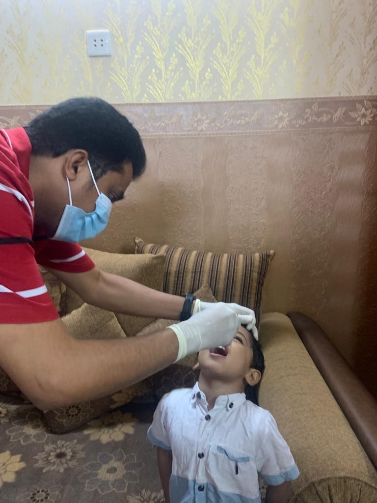 موضحةً أن التطعيم ضد شلل الأطفال لايتعارض مع تحصينات الطفل الأخرى ونظراً لأن المركز الصحي مغلق للصيانة فقد قام الفريق الصحي بتنفيذ الحملة ميدانياً من منزل لمنزل.