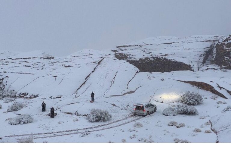"الأرصاد": تساقط الثلوج على الحدود الشمالية والجوف ومرتفعات تبوك "جبل اللوز - علقان"