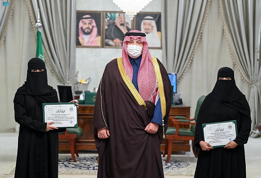 سمو أمير منطقة الحدود الشمالية يكرم معلمة وطالبة لحصولهما على جائزة الشيخ حمدان بن راشد