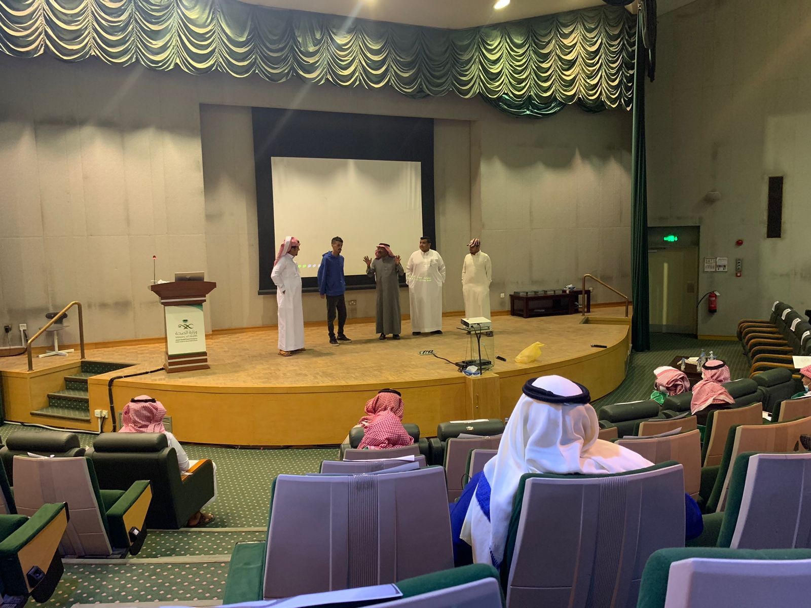 وتضمن الاحتفال عرضاً مرئياً عن يوم التأسيس وتاريخ المملكة، بعد ذلك تم تقديم مشهد مسرحي من بطولة الفنان سعد المدهش والفنان فيصل العيسى والفنان سعود بن راشد والفنان هاني العتيبي والفنان الشاب راشد بن سعد المدهش، عن الوطن وتراب الوطن الذي لا يقدر بثمن، كما تضمن الاحتفال إقامة معرض تشكيلي بمشاركة نخبة من الفنانين التشكيليين السعوديين الذين تم تكريمهم في نهاية الاحتفال تقديرا لمشاركتهم في إدخال البهجة والسرور على المرضى.