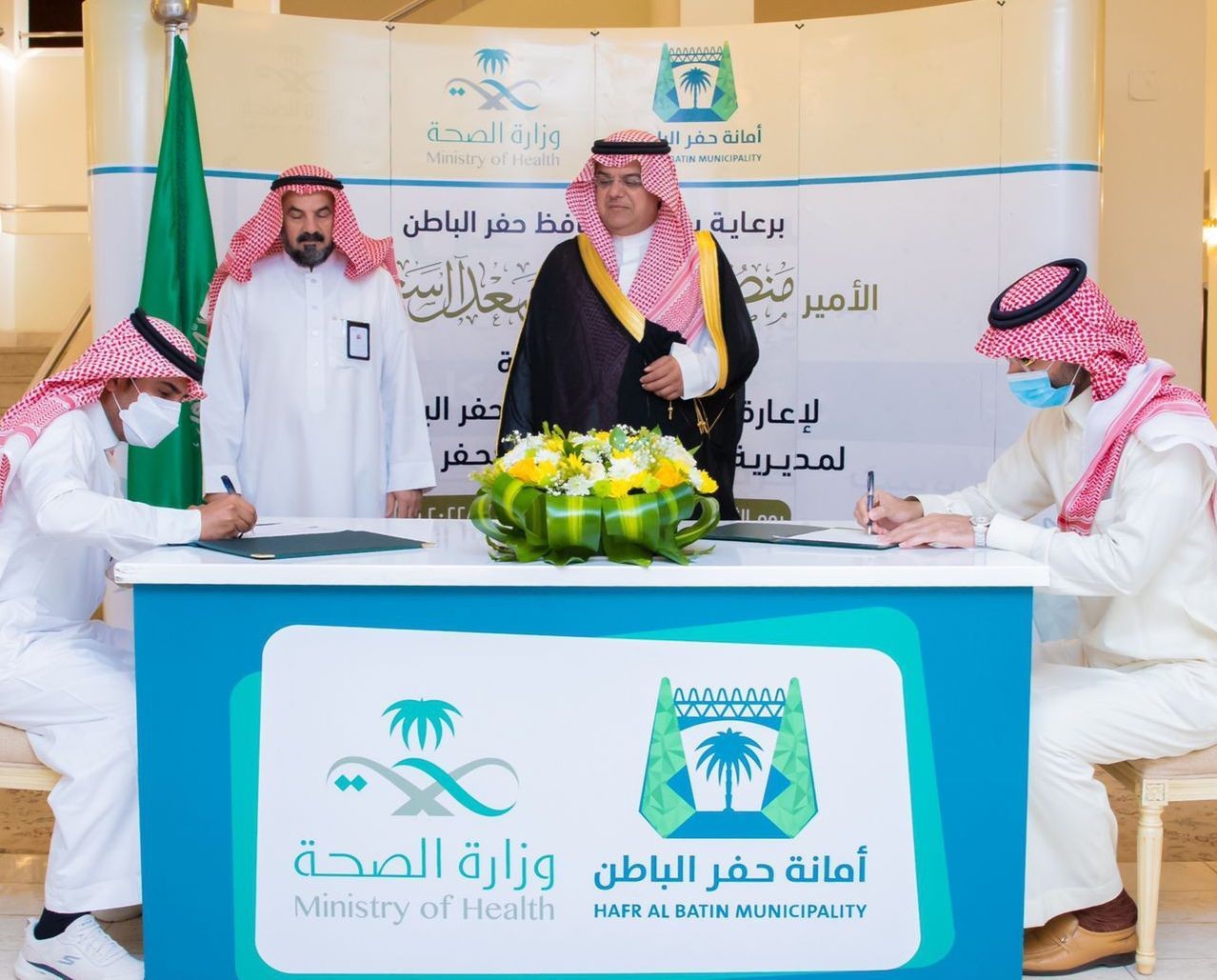 شهد صاحب السمو الأمير منصور بن محمد بن سعد آل سعود محافظ حفر الباطن، صباح اليوم الثلاثاء 15 مارس 2022 توقيع مذكرة تعاون بين أمانة حفر الباطن ومديرية الشؤون الصحية، ووقع الإتفاقية كلاً من أمين محافظة حفر الباطن المهندس/ خلف بن حمدان العتيبي، ومدير الشؤون الصحية بحفر الباطن/ الأستاذ ناصر بن راشد الصافي، وذلك بحضور الرئيس التنفيذي للتجمع الصحي بالمحافظة/ د. محمد بن إبراهيم الهبدان في مقر المحافظة