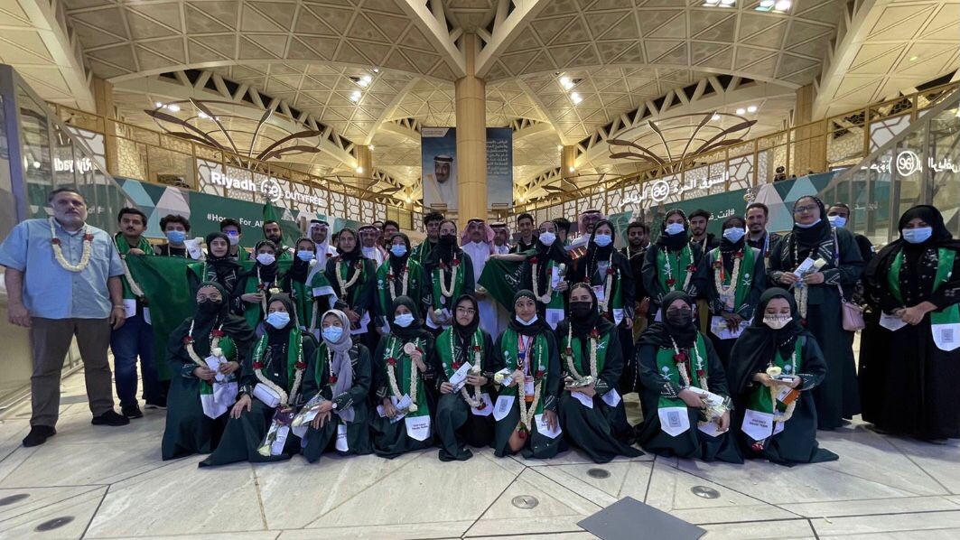 حظى أعضاء المنتخب السعودي للعلوم والهندسة المتوج بـ 22 جائزة في معرض ريجينيرون الدولي للعلوم والهندسة (آيسف 2022 ) ، باستقبال حاشد من المسؤلين بالمطار والتعليم واهالي الفائزين الجوائز العالمية حال وصولهم مساء امس لمطار الملك خالد الدولي بالرياض برفقة رئيس مجلس إدارة مؤسسة الملك عبدالعزيز ورجاله للموهبة والإبداع “موهبة” المهندس فيصل الدويش، وقد لقى هذا الانجاز صداً لدى الشعب السعودي الذى بادلهم الاحترام والتقدير بعد ان رفعوا  اسم المملكة العربية السعودية عالياً فى المحافل العالمية وتميزهم بالتفوق على نظرائهم من بين 85 دولة وحققوا افضل الجوائز والمراكز المتقدمة بهذا المعرض  العالمي  ،