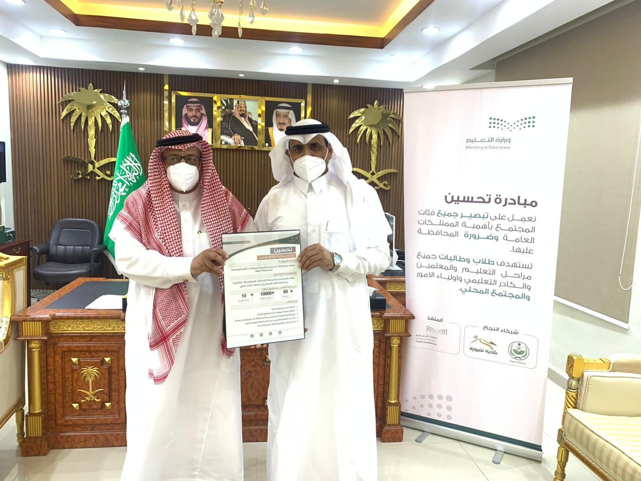 دشن محافظ شرورة موفق بن عبدالهادي العنزي اليوم الأثنين بمكتبه بالمحافظة انطلاق مبادرة تعليم شرورة لمعالجة التشوه البصري تحت عنوان " تحسين " بحضور مدير إدارة تعليم شرورة الدكتور فايز بن علي الأسمري.