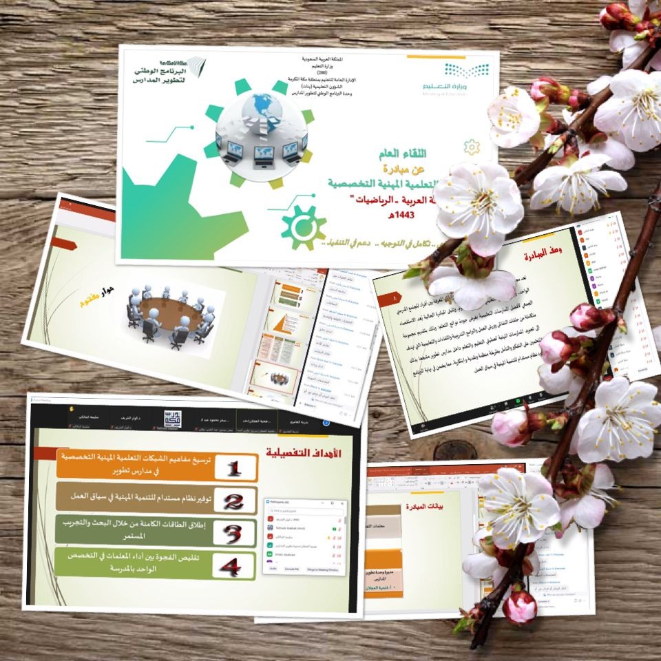 ضمن مبادرة (الشبكات التعلمية المهنية التخصصية في مجالي: (اللغة العربية الرياضيات ) نفذت وحدة تطوير المدارس بمكة بنات اللقاء العام للشبكات التعلمية المهنية التخصصية تحت شعار " خبرات تُبنى وعطاءات تبقى " مصحوبًا بعرض مرئي ، وذلك يوم الاثنين 15 /10 /1443هـ عن بعد عبر تطبيق الـZOOM من الساعة - : 10 صباحًا إلى 12 ظهرًا بدعم من إدارة التدريب والابتعاث