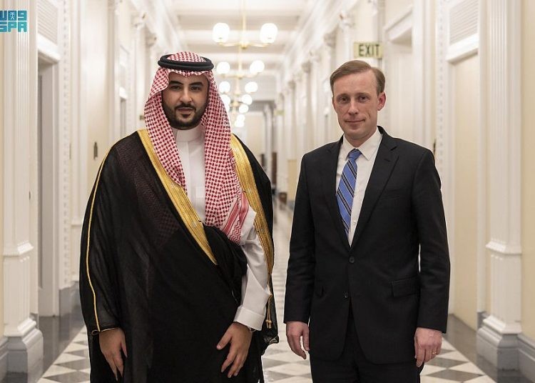 والتقى الأمير خالد بن سلمان نائب وزير الدفاع في العاصمة الأمريكية واشنطن مستشار الأمن القومي الأمريكي جيك سوليفان، وجرى خلال اللقاء استعراض العلاقات السعودية – الأمريكية التاريخية الراسخة وبحث آفاق التعاون والتنسيق المشترك بين المملكة العربية السعودية والولايات المتحدة الأمريكية، وسبل دعمها وتعزيزها في إطار الرؤية المشتركة بين البلدين الصديقين.