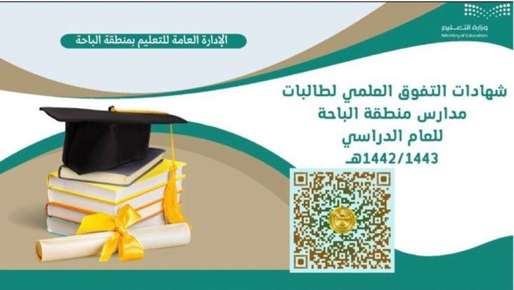 رعى مدير عام التعليم بمنطقة الباحة الدكتور عبد الخالق بن حنش الزهراني مساء أمس الأحد ١٤٤٣/١٠/٢١هـ حفل تكريم الطالبات المتفوقات دراسيًا والبالغ عددهن 4994 طالبة من مختلف مدارس المنطقة. للمرحلتين المتوسطة والثانوية للعام 1441- 1442 والذي نظمته إدارة الإرشاد الطلابي "بنات " افتراضيا.
