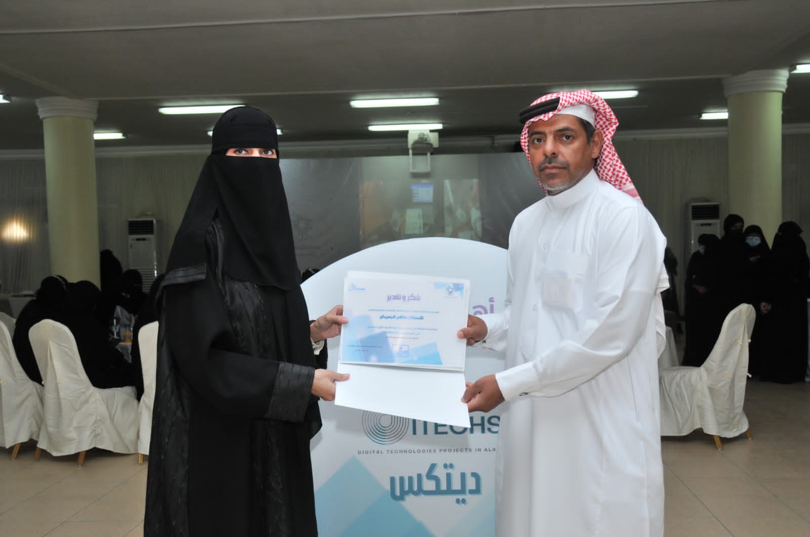 وفي المعرض تحدثت الأستاذة هبة الحمام بأن كليه التقنيه الرقميه للبنات بالاحساء تفتخر اليوم في مساهمتها في تحقيق رؤيه المملكه ٢٠٣٠ في دعم التحول الرقمي و مجال الابتكار بإقامه معرض مشاريع التقنيات الرقميه ديتكس الاول لعرض عدد من المشاريع المتميزه و المبتكره من تخصصي الدعم الفني و البرمجات و تعنى هذه المشاريع تقديم حلول و خدمات تخدم المجتمع من خلال تحول رقمي