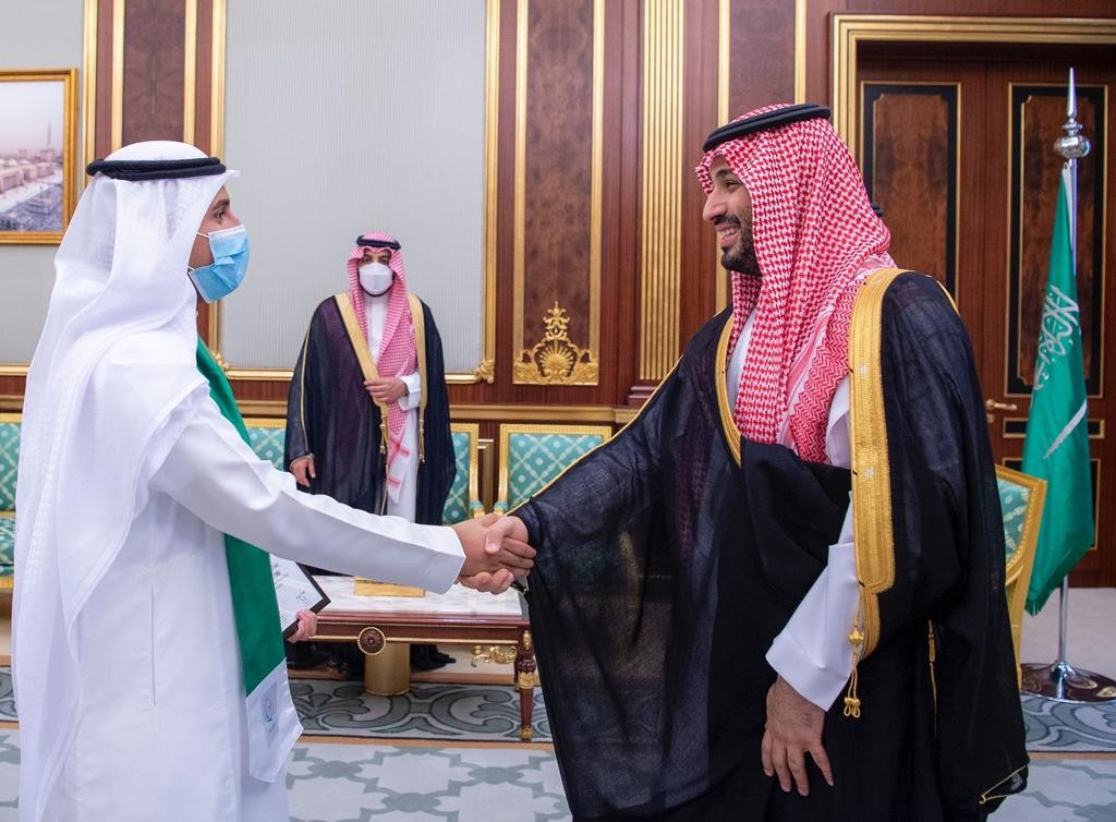 استقبل صاحب السمو الملكي الأمير محمد بن سلمان بن عبدالعزيز ولي العهد نائب رئيس مجلس الوزراء وزير الدفاع، اليوم، وفد مؤسسة الملك عبدالعزيز ورجاله للموهبة والإبداع “موهبة” برئاسة الأمين العام المكلف الدكتورة آمال بنت عبدالله الهزاع، والطلبة الموهوبين والموهوبات الفائزين في معرض آيسف 2022م من الحاصلين على الجوائز الكبرى والخاصة.