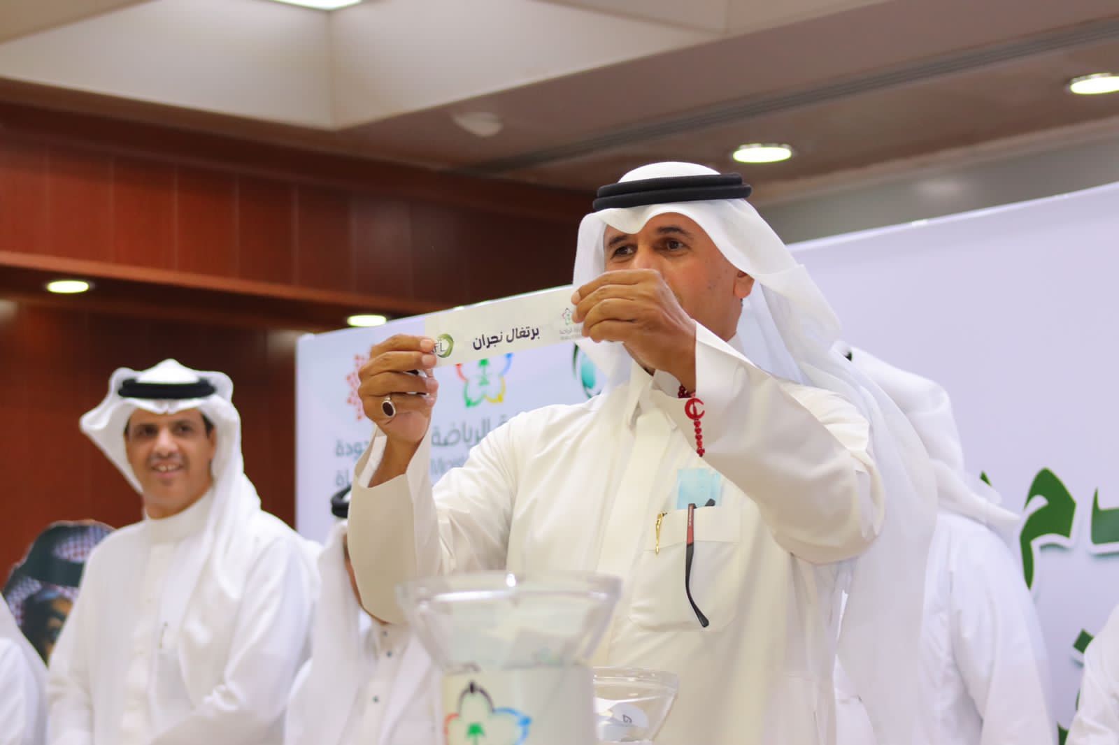 وتمت خطوات اجراء القرعة بتوزيع الفرق المشاركة إلى 5 مجموعات ، وكذلك تحديد موعد إنطلاق البطولة بتاريخ 1443/11/12هـ على ملعب جامعة نجران .