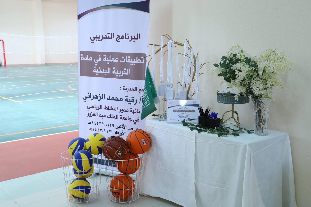 أقامت إدارة تعليم عنيزة برنامجا تدريبياً نوعياً للتطبيقات العملية في مادة التربية البدنية, يستهدف معلمات التربية البدنية في جميع المراحل التعليمية في مدارس تعليم محافظة عنيزة, على الصالة الرياضية للابتدائية الخامسة والثلاثون للطفولة المبكرة, بقيادة المدربة رقية بنت محمد الزهراني -نائب مدير النشاط الرياضي في جامعة الملك عبدالعزيز- حيث يستمر البرنامج لمدة يومين بهدف تحسين وتطوير الاداء الفني والبدني, ورفع كفاءة المعلمات من خلال التطبيقات العملية بالإضافة إلى إكسابهن مهارات بناء  اللياقة البدنية والحركية .