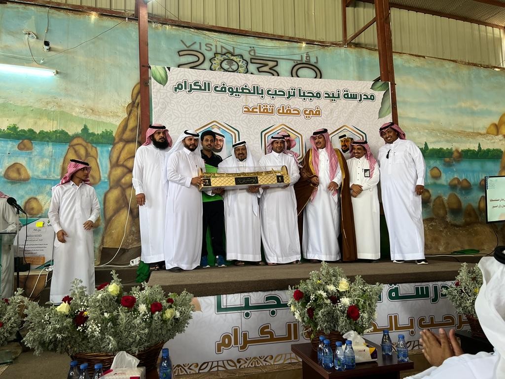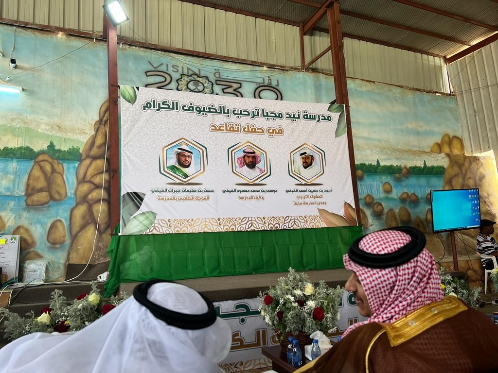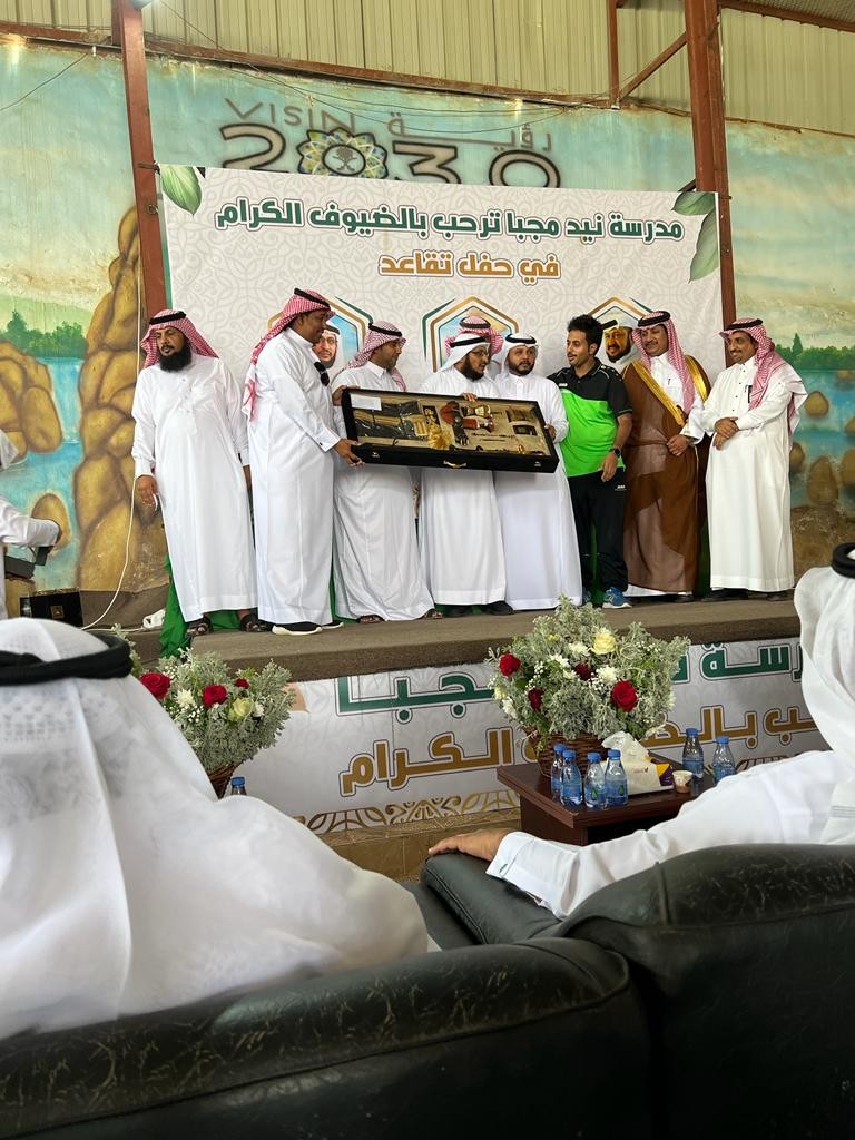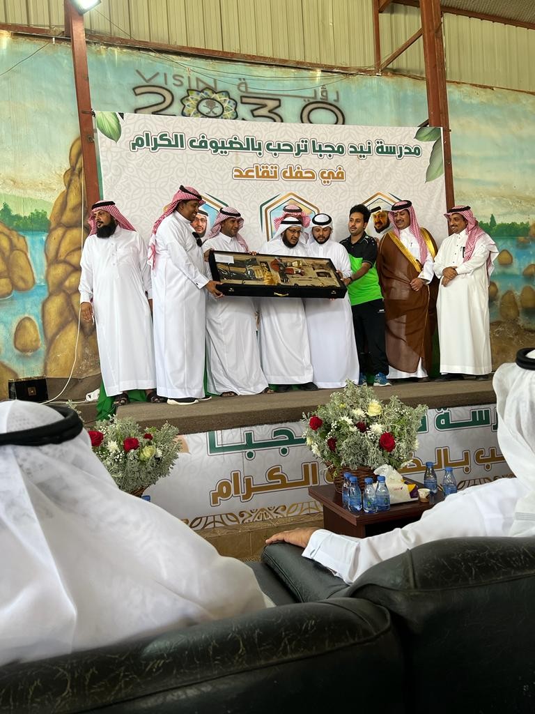 أقامت مدرسة ابتدائية ومتوسطة وثانوية نيد مجبا اليوم الخميس الموافق 3/11/1443 . بمبنى المدرسة حفل تكريم للمعلمين المتقاعدين وهم كلا من الأستاذ/أحمد حسين الفيفي والأستاذ / موسى محمد الفيفي والأستاذ / حسن سليمان الفيفي وقد شرف الحفل سعادة رئيس مركز الجوة بفيفاء وسعادة مدير مكتب التعليم بمحافظة فيفاء الأستاذ / يحيى علي الفيفي وأستهل الحفل بالسلام الملكي ثم آيات من القران الكريم تلى ذلك كلمة ترحيبية ، وبعد ذلك كلمة المدرسة القاها الأستاذ/جابر قاسم ، جاء فيها ان هؤلاء النجوم الذين نحتفي بهم اليوم ، مثال يُقتدى به في البذل والعطاء وقدوه يحتذى بها في الأخلاق والتربية وقامات في العملية التعليم من خلال مسيرتهم المشرقه خلال سنواتهم التعليمية، سائلين الله لهم السداد والتوفيق في حياتهم الجديدة .واختتم الحفل بتناول وجبة الغداء على شرف المحتفى بهم .