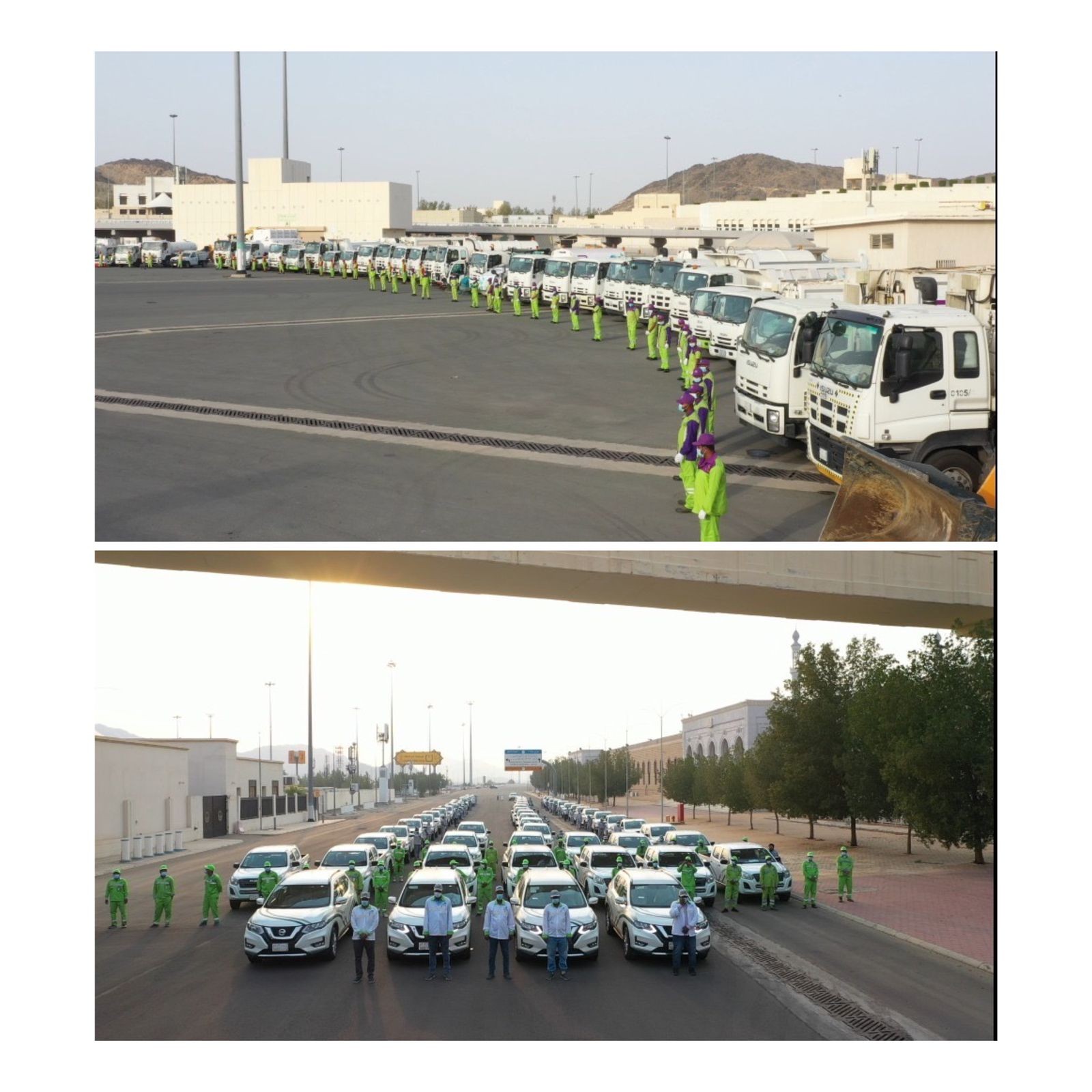 وفي المشاعر المقدسة تم دعمها بمراقبين ومشرفين في تلك الفترة إضافة الى دعمها أيضاً بالمعدات اللازمة مثل الشفاطات والمكانس الآلية لتجميع النفايات من الجسر والبوبكات والقلابات والشيولات وغيرها ، وسيتم العمل على مدار 24 ساعة في أيام الذروة وفترة تواجد الحجاج ، كما تم تجهيز عدد (140) من المخازن الأرضية للنفايات للتخزين المؤقت النفايات بعد كبسها بمشعر منى لمواجهة صعوبة حركة المعدات والاستفادة من الصناديق الضاغطة البالغ عددها (1379) صندوق إضافة الى (9) تريلات كبيرة ضاغطة .