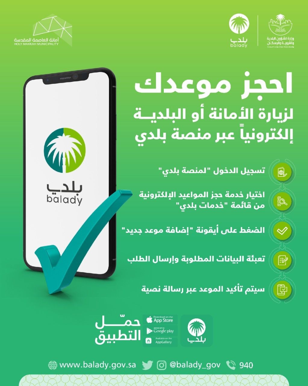 أمانة العاصمة المقدسة تقدّم خدمة حجز موعد إلكتروني عبر منصة "بلدي"