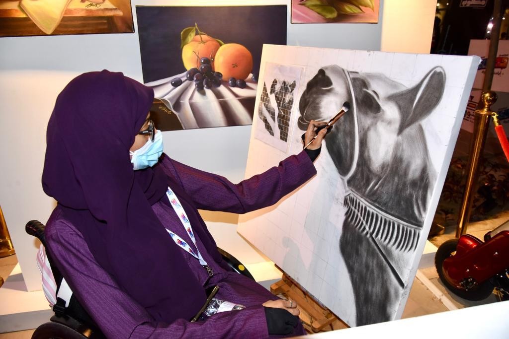 "آثار" موهوبة سعودية تتجاوز الإعاقة لتبهر زوار جدة آرت بروميناد برسومات الفحم