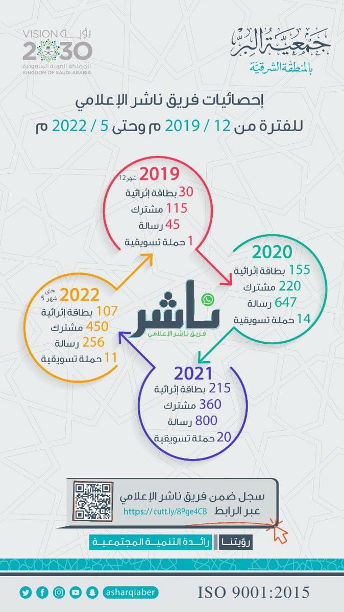 قال المتحدث الإعلامي ومساعد الأمين العام لجمعية البر بالمنطقة الشرقية فيصل بن مقبل المسند أن عدد المسجلين ببرنامج "ناشر" الإعلامي وصل إلى 450 مشترك موضحا أن برنامج ناشر هو برنامج إعلامي دشنته جمعية البر بالمنطقة الشرقية عام 2019 لإتاحة الفرصة للناشطين على برنامج WhatsApp والإعلاميين للمساهمة في نشر برامج ومشاريع الجمعية وحملاتها الإعلامية عبر WhatsAppوقال المسند أن الجمعية تفتح مزيد من الفرص الخيرية لأهل الخير سواء بالتبرع النقدي لبرامج ومشاريع الجمعية أو بالمساهمة في نشر برامجها وحملاتها التسويقية الخيرية والتنموية لأفراد المجتمع ليكون الناشر بذلك جسر بين المحسن والمحتاج وإسهاما أيضا منهم في نشر ثقافة العمل المجتمعي والتنمية المستدامة وتعزيزا للصورة الذهنية للجمعية وأكد المسند أن الجمعية ركزت على برنامج WhatsAppلما وجدته من إقبال عدد كبير من المستخدمين على هذا البرنامج ونجاحه في جذب المجتمع إليه كوسيلة فاعلة ومؤثرة في التواصل الاجتماعي، وعن آلية المشاركة والانضمام للبرنامج أوضح أنه يمكن لجميع أفراد المجتمع مواطنين ومقيمين التسجيل في ناشر من خلال الرابط https://cutt.ly/8Pge4CB قائلا أن دور الناشر في هذه المبادرة يتوقف على استقبال المواد الإعلامية من الجمعية عبر WhatsAppمن إدارة البرنامج ومن ثم يقوم بإعادة نشر هذه المواد الإعلامية لأكبر عدد من المجموعات والمضافين بجواله وذلك مساهمة منه في توعية المجتمع وتمكينا لترابطه، وأضاف المسند أن البرنامج انطلق عام 2019 باستقطاب 115 مشترك على WhatsAppثم وصل عدد المشتركين في 2020 إلى 220 مشترك قاموا بالترويج ل14 حملة إعلامية للجمعية على WhatsAppوتم مشاركتهم بعدد 647 رسالة عبر WhatsAppبينما وصل عدد المشتركين بالبرنامج في 2021 إلى 360 مشترك قاموا بالترويج ل20 حملة إعلامية وتم مشاركتهم بعدد 800 رسالة واتس اب لينمو عدد المشتركين ببرنامج ناشر على WhatsAppخلال هذا العام ويصل إلى 450 مشترك قاموا بالترويج حتى الآن ل11 حملة إعلامية وتم مشاركتهم بعدد 256 رسالة .
