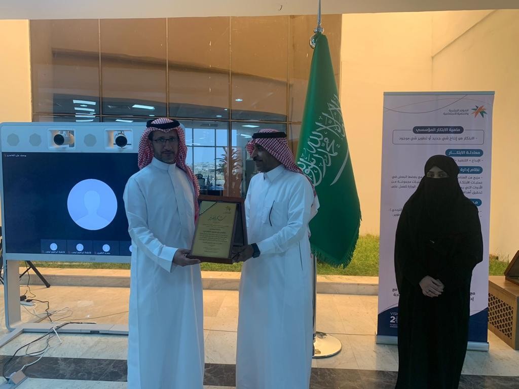 وقدم بعد ذلك عرضا توضيحي لمنصة الابداع والابتكار والذي قدمته سفيرة التميز المؤسسي وعضو فريق الابداع والابتكار بالوزارة الزميلة الاستاذة مارية المحمدي