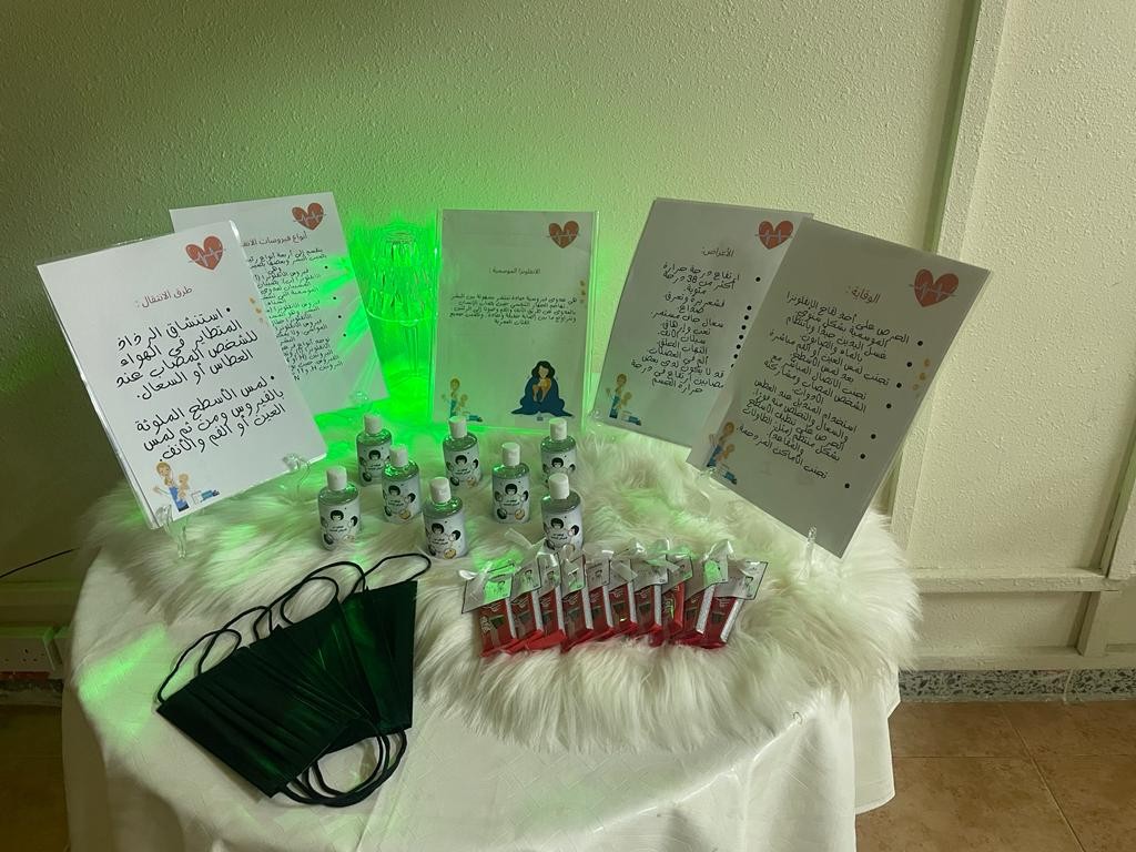 هذا وقد تم تنفيذ البرنامج بقاعة المصادر صاحب ذلك إعداد ركن توعوي، فيما قام الفريق الصحي من الطالبات بشرح وافي وعملي عن طرق الوقاية من الأمراض الموسمية كالإنفلونزا وكورونا وضرورة أخذ اللقاحات الخاصة بها.