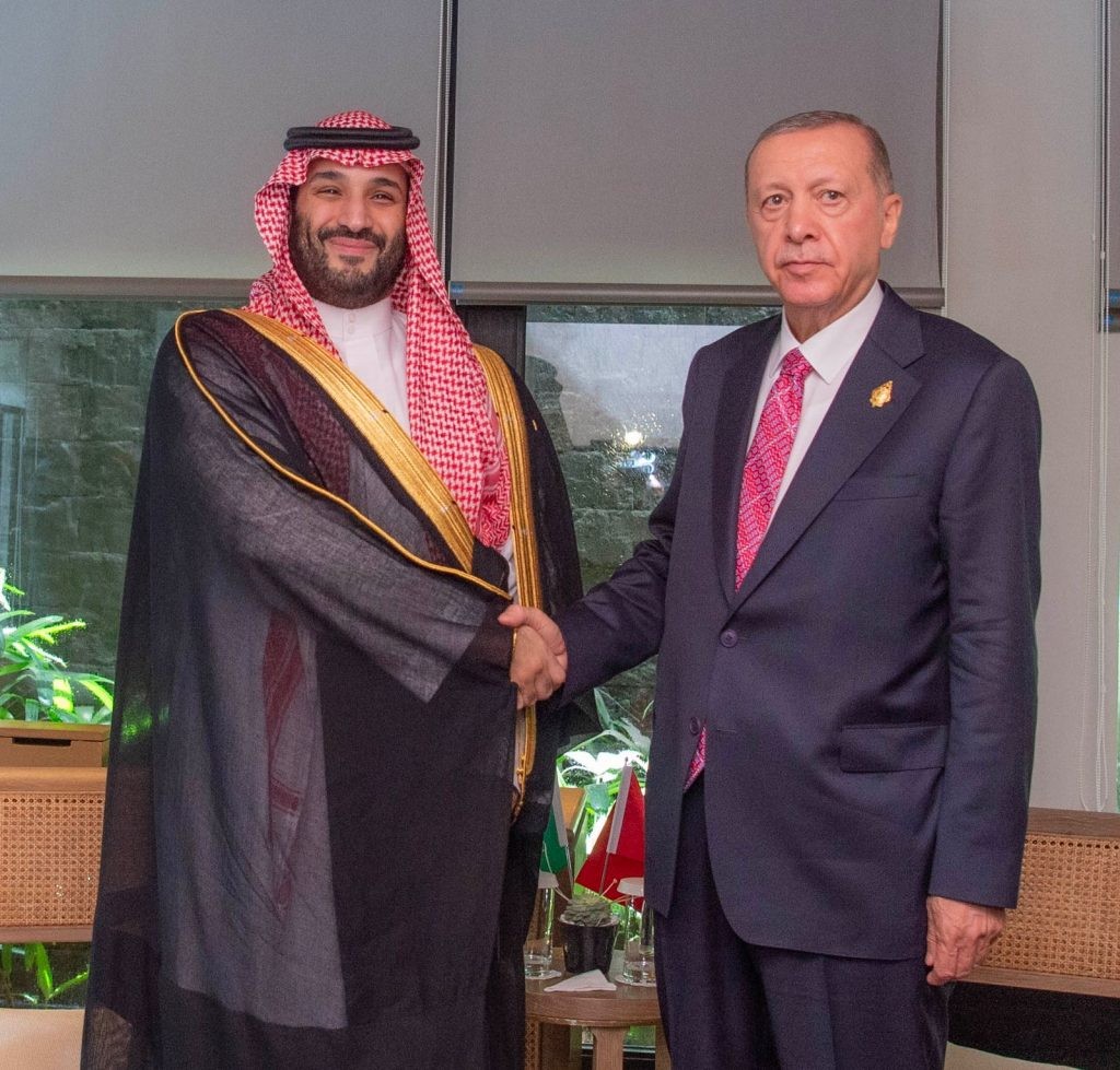 التقى صاحب السمو الملكي الأمير محمد بن سلمان بن عبدالعزيز، ولي العهد رئيس مجلس الوزراء رئيس وفد المملكة المشارك في قمة قادة دول مجموعة العشرين في مدينة بالي بجمهورية إندونيسيا، اليوم، فخامة الرئيس رجب طيب أردوغان رئيس جمهورية تركيا وذلك على هامش انعقاد القمة.