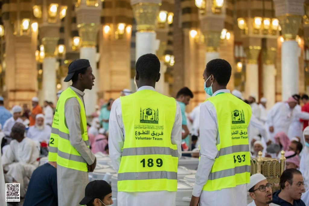 شارك 7000 متطوّع في تقديم الخدمات الميدانية لقاصدي المسجد النبوي خلال الثمانية أشهر الماضية, وذلك ضمن جهود وكالة الرئاسة العامة لشؤون المسجد النبوي لتفعيل دور العمل التطوّعي وتنفيذ الخطط التشغيلية خلال مواسم الحج والعمرة.