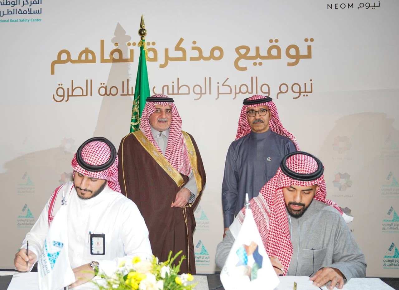 عقب ذلك  شهد سمو أمير منطقة تبوك توقيع مذكرة تفاهم بين نيوم والمركز الوطني لسلامة والطرق، ليقوم سموه بعد ذلك بجولة على المعرض المصاحب حيث أستمع لمكوناته وأهم الرسائل التي يحملها لحفظ أرواح سالكي ومستخدمي الطرق.