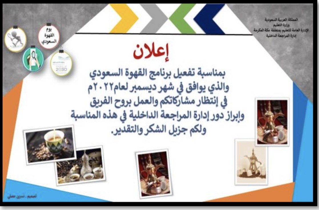 إدارة المراجعة الداخلية بتعليم مكة تفعّل برنامج القهوة السعودي 2022م