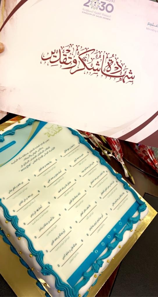 كرمت الإدارة العامة للتعليم بمنطقة مكة المكرمة  اليوم الخميس الموافق 21 / 5 / 1444هـ، الطالبات المتأهلات للمعارض المركزية والتي ستقام في محافظة جدة خلال الفترة من 18 ديسمبر إلى 20 ديسمبر الموافق 24 – 26 / 5 / 1444 هـ، وذلك بحضور مساعدة المدير العام للشؤون التعليمية الأستاذة لمياء عبد العزيز بشاوري.