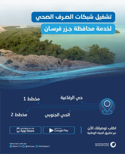 ودعت المستفيدين بمحافظة جزر فرسان إلى طلب خدمة الصرف الصحي من خلال القنوات الرقمية للشركة، مشيرةً إلى أنه يجب على العملاء أيضًا البدء في تنفيذ مخارج الصرف الصحي في عقاراتهم حتى تتمكن الشركة من توصيلها بالشبكات الفرعية للخدمة.