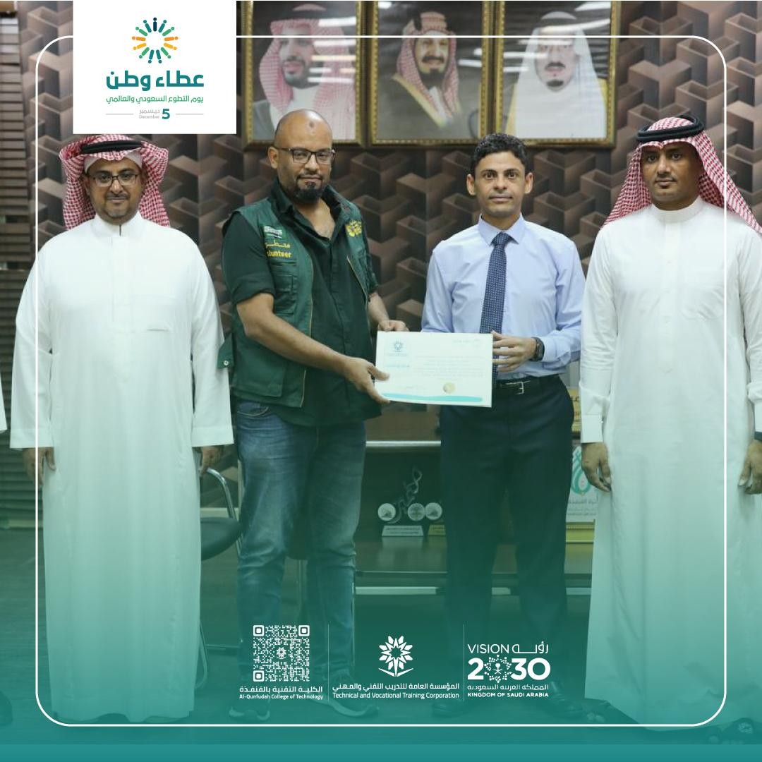 أقامت الكلية التقنية بالقنفذة  المشروع الكشفي الوطني لتعزيز العمل الوطني وذلك بالتزامن مع يوم التطوع السعودي والعالمي وتم تنفيذ عدد من الفعاليات والبرامج شملت تدشين فريق رُفّاد التطوعي بالكلية والذي يهدف  إلى تفعيل المهارات التدريبية لمتدربي ومنسوبي الكلية وأفراد المجتمع بالشكل السليم ، وتم تكريم المهندس أكرم الأنصاري أحد أعضاء هيئة التدريب بالكلية لمشاركته في برنامج تدريبي تطوعي بدولة اليمن تحت إشراف مركز الملك سلمان للإغاثة والاعمال الإنسانية ، وتم تنفيذ برنامج تدريبي بعنوان "تصميم المبادرات التطوعية" ، و أطلقت الكلية عدد من الفرص التطوعية عبر منصة العمل التطوعي بوزارة الموارد البشرية من صيانة ونظافة وتحسين للاماكن العامة بالكلية وبالمحافظة .