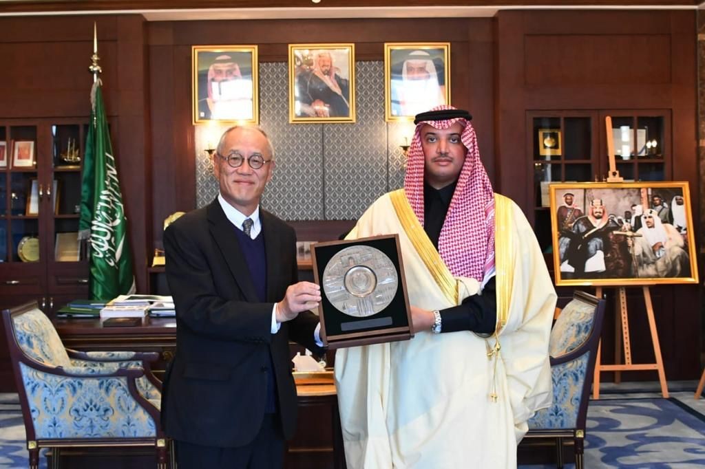 ورحب سموّه بالسفير الياباني، متمنيًا له طيب الإقامة في المحافظة ، وجرى خلال اللقاء تبادل الأحاديث الودية واستعراض بعض المواضيع ذات الاهتمام المشترك.
