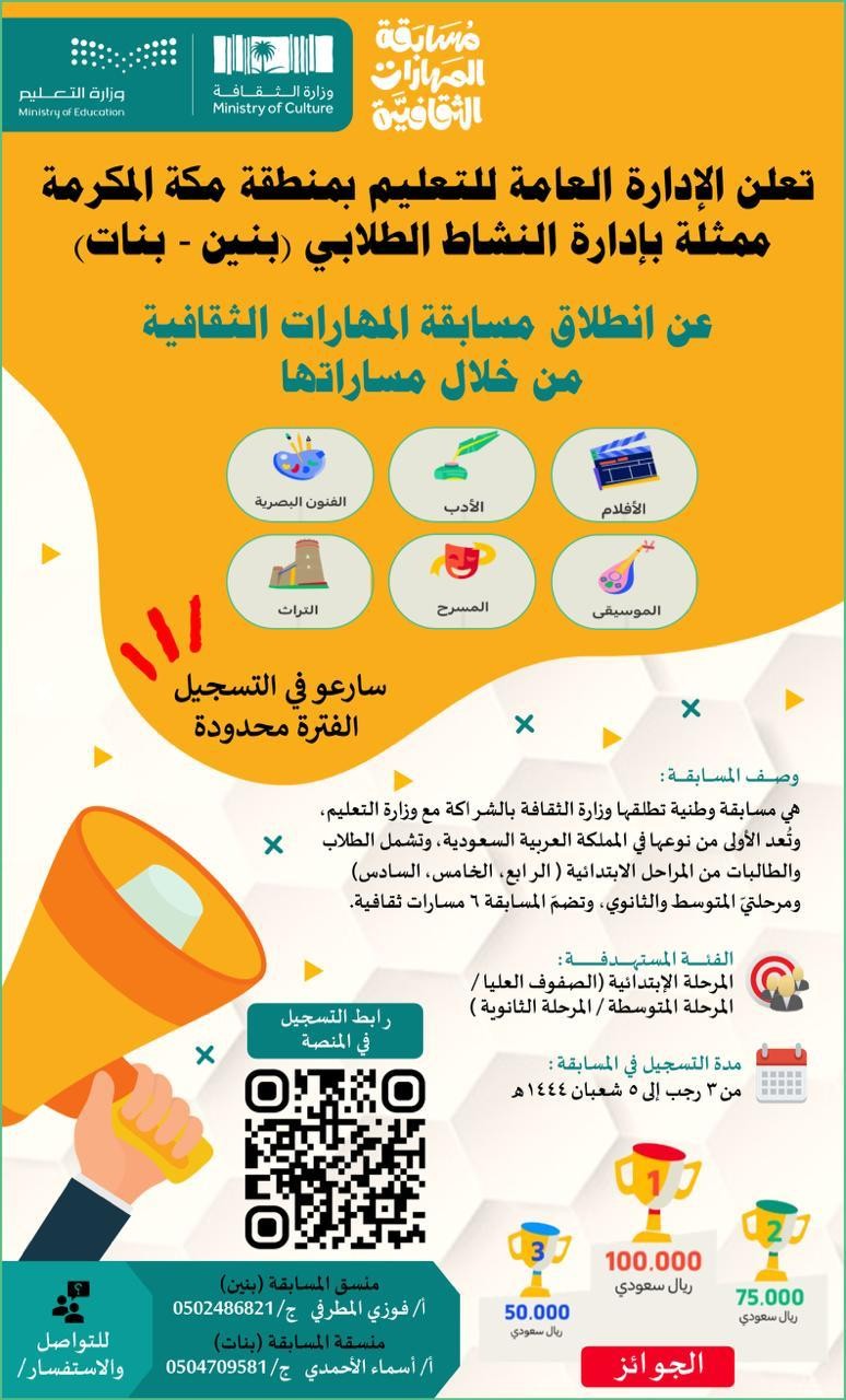 تفعيل مسابقة "المهارات الثقافية" بمدارس تعليم مكة