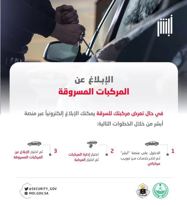 3 خطوات بسيطة للإبلاغ عن المركبات المسروقة عبر “أبشر”