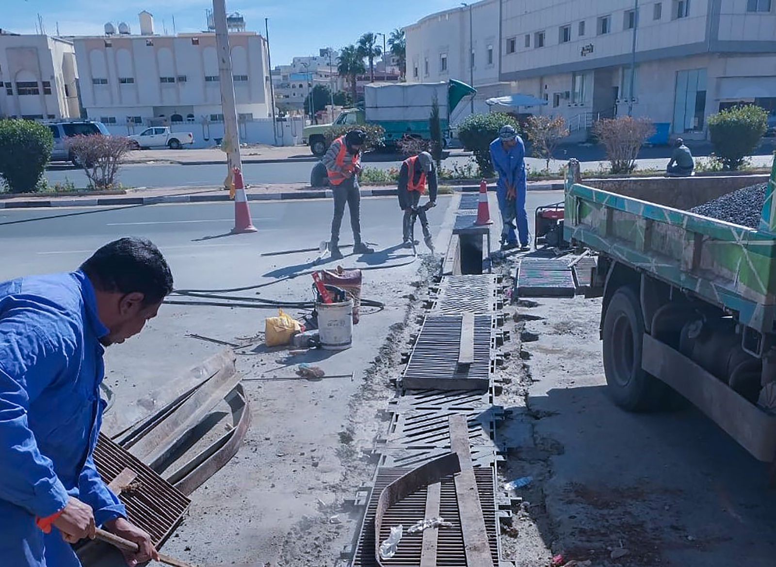 صيانة أغطية المنهولات التالفة والمتضررة بشبكة تصريف سيول الطائف