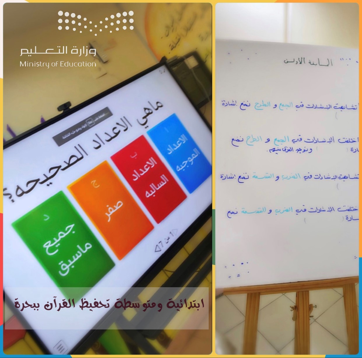 برنامج خصائص الأعداد الصحيحة بابتدائية ومتوسطة تحفيظ القرآن بحرة المجاهدين