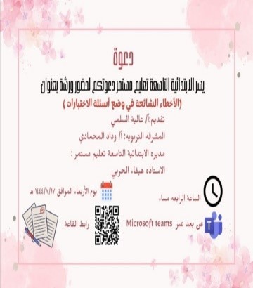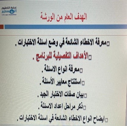 التعليم المستمر تعقد الورشة التدريبية الأخطاء الشائعة في وضع أسئلة الاختبارات لمعلمات التعليم المستمر