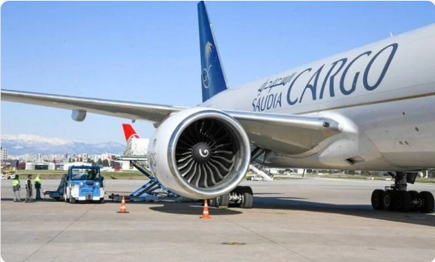 إنفاذا لتوجيهات خادم الحرمين الشريفين الملك سلمان بن عبدالعزيز آل سعود وولي العهد رئيس مجلس الوزراء الأمير محمد بن سلمان بن عبدالعزيز آل سعود، غادرت مطار الملك خالد الدولي فجر اليوم (الجمعة)، الطائرة الإغاثية السعودية الثالثة، إلى مطار أضنة بجمهورية تركيا تحمل على متنها 104 أطنان و62 كيلوغراماً من المساعدات الإغاثية، تشتمل على المواد الغذائية والخيام والبطانيات والبسط والحقائب الإيوائية، إضافة إلى المواد الطبية.