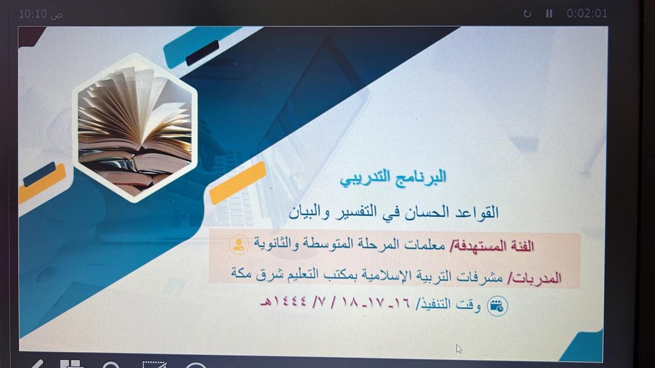 مكتب تعليم شرق مكة ينفذ البرنامج التدريبي "القواعد الحسان في التفسير والبيان"