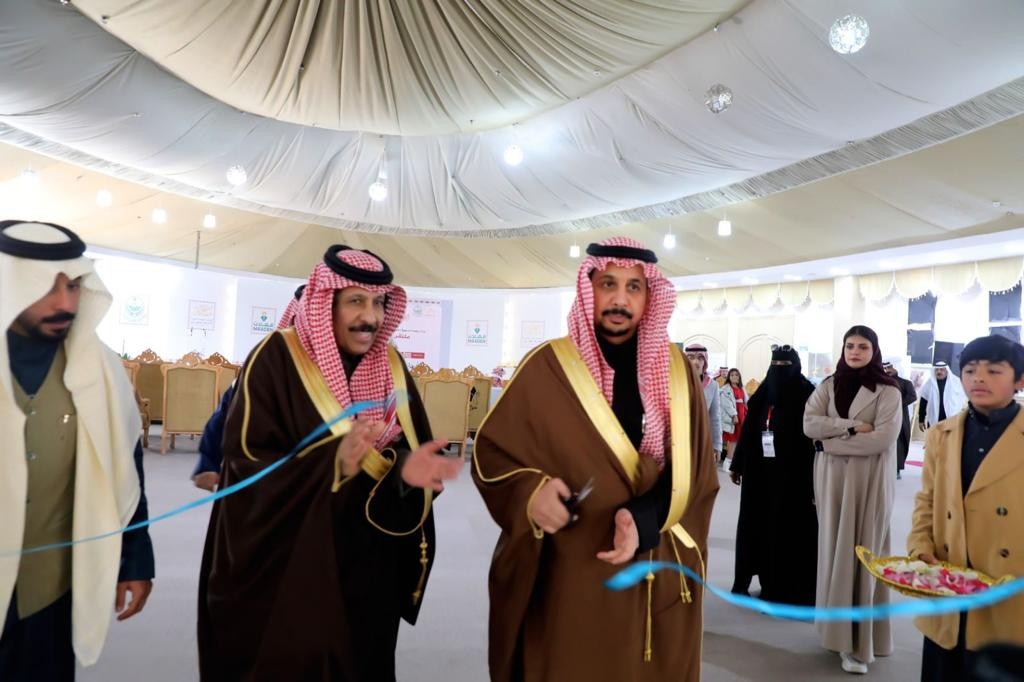 وقص وكيل إمارة المنطقة الشريط إيذاناً بافتتاح المعرض الذي يستمر لمدة ٤ أيام, وتجول داخل أروقته ، واستمع لشرح عن محتوياته من قبل المشرف على المعرض الأستاذ مفرح السويلمي والاستاذه يازي الدغماني المشرفه على الورش الفنية
