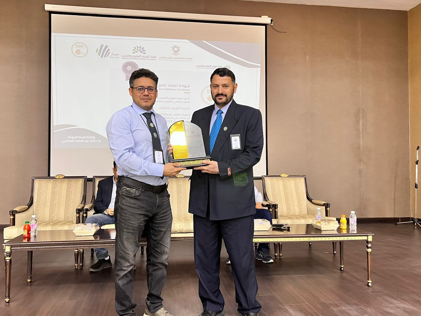 أقامت الكلية التقنية بالطائف حفلا تكريميا لمنسوبيها في اللجان العاملة بمناسبة حصول الكلية على الاعتماد المؤسسي الكامل من قبل هيئة تقويم التعليم والتدريب وذلك بحضور عميد الكلية الأستاذ / خالد بن سعيد الغامدي ووكلاء ورؤساء الأقسام ومنسوبي الكلية من مدربين وإداريين .