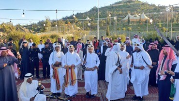 بحضور سعادة محافظ بلجرشي الأستاذ / نايف الهزاني احتفل المركز الوطني لتنمية الغطاء النباتي ومكافحة التصحر في المتنزه الوطني بيوم التأسيس حيث قام سعادته بزيارة الأركان المصاحبة لهذا الاحتفال ومن ضمنها بعض الأدوات التراثية و المشاركة في العرضة الشعبية .