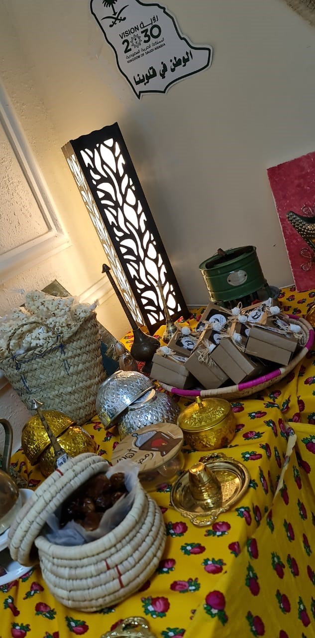 تضمن الاحتفاء إقامة أركان تحتوي على مجموعة من الأكلات الشعبية والأزياء التقليدية المستوحاة من الموروث الشعبي القديم وتشغيل القصائد والشيلات التي تعبر عن حب الوطن واللحمة الوطنية وقد شاركت طالبة برنامج التربية الفكرية الملحق بالابتدائية 59الطالبة تولين عدنان باروم بمجموعة من التوزيعات المتضمنة شعار يوم التأسيس ومشاركة طالبة فصول النور الملحقة بالثانوية الخمسون الطالبة رونق ماجد سالم بكلمة عن يوم التأسيس على منبر مسرح قاعة الملك فهد رحمه الله ضمن فعاليات الاحتفاء بيوم التأسيس المقام على مستوى إدارة تعليم منطقة مكة المكرمة.