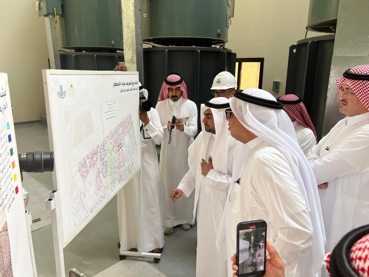 واطلع معاليه في جولته الميدانية على عدد من مواقع العمل، بدأها بالوقوف على تنفيذ مشاريع شبكات تصريف الأمطار في ضاحية الملك فهد بالدمام، والتي طرحت خلالها الأمانة 7 مشاريع جديدة لاستكمال وتطوير البنية التحتية بقيمة 673 مليون ريال، ضمن المرحلة الثانية من خدمة الأحياء المتبقية بالضاحية، فيما تضمنت مشاريع المرحلة الأولى إنشاء خطوط طرد بأقطار 1800 ملم من موقع محطات تصريف مياه الأمطار بالضاحية، بأطوال إجمالية 27588 م طولياً، وشبكات لتصريف مياه الأمطار وتخفيض منسوب المياه الجوفية بأقطار تتراوح من 400 ملم وحتى 3000 ملم وبأطوال بلغت 36103 أمتار طولية و 545 مناهل تصريف مياه الأمطار، و 860 مصائد تصريف مياه الأمطار، ومحطة ضخ لتصريف مياه أمطار بالحي الخامس بقدرة تصريفية إجمالية بلغت 26500 م مكعب في الساعة، وكذلك محطة ضخ لتصريف مياه الأمطار بالحي الثاني بقدرة تصريفية 22700 م مكعب في الساعة.